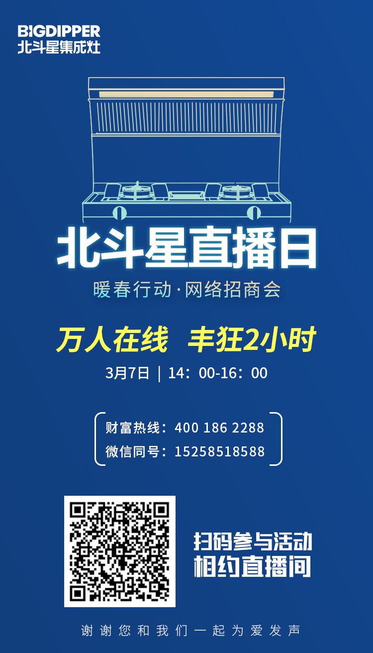 3月7日14:00,北斗星集成灶