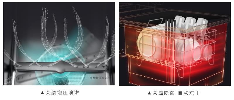 北斗星V60洗碗機,采用的是創新變頻增壓噴淋,立體包圍式強流勁水,再加上75℃高溫沖洗,對碗具進行無死角噴刷,強效去污,高溫除菌。洗碗過后還能自動烘干,自動開門透氣,碗內沒有水珠殘留,避免滋生細菌,拒絕二次污染,碗筷用起來潔凈更安心。