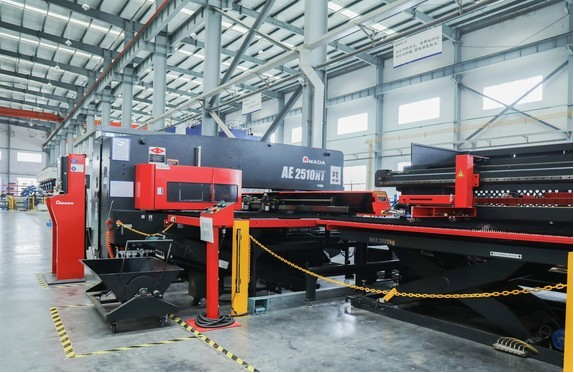 車間的數(shù)控沖剪系統(tǒng)生產(chǎn)區(qū)域,能夠根據(jù)已編好的程序,使機(jī)床自動(dòng)加工零件,實(shí)現(xiàn)了鋼板的合理化切割利用,在提升生產(chǎn)效率的同時(shí),也大幅降低了原材料的浪費(fèi)。