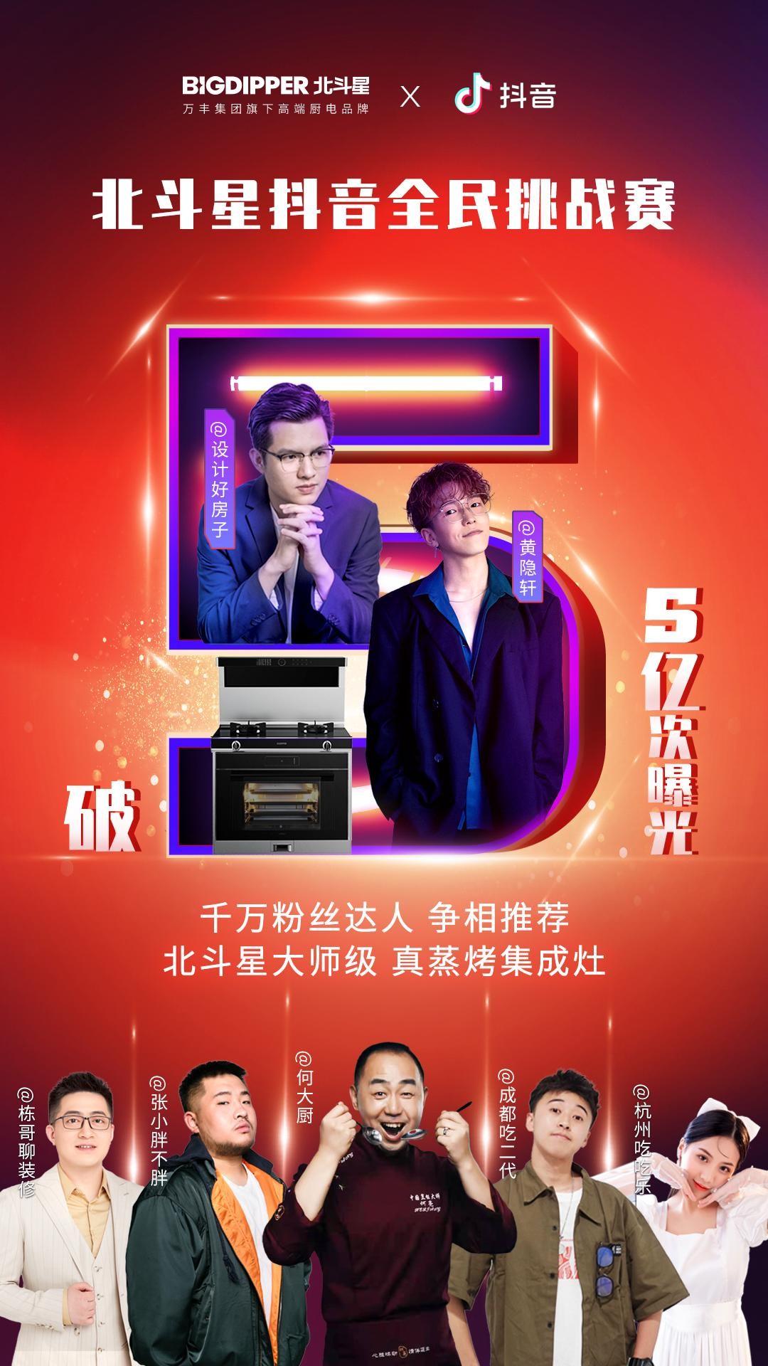 在品牌渠道上,北斗星集成灶的發展,從邀請品牌愛家形象大使郎朗作為代言人、聯合新昌文旅演繹美食文化“浙東天姥唐詩宴”、攜手中國烹飪大師何亮以及米其林星廚開展美食教學、“大師級 真蒸烤”點亮重慶地標WFC,再到全力開拓線上市場以及通過互聯網,聯合抖音上線全民挑戰賽,曝光量破五億次,大大拓寬了品牌影響力,全方位造勢,賦能北斗星品牌傳播,為大家塑造一個“大師級·真蒸烤”的高端廚電品牌形象,改變了大家對于廚電品牌的傳統認知。