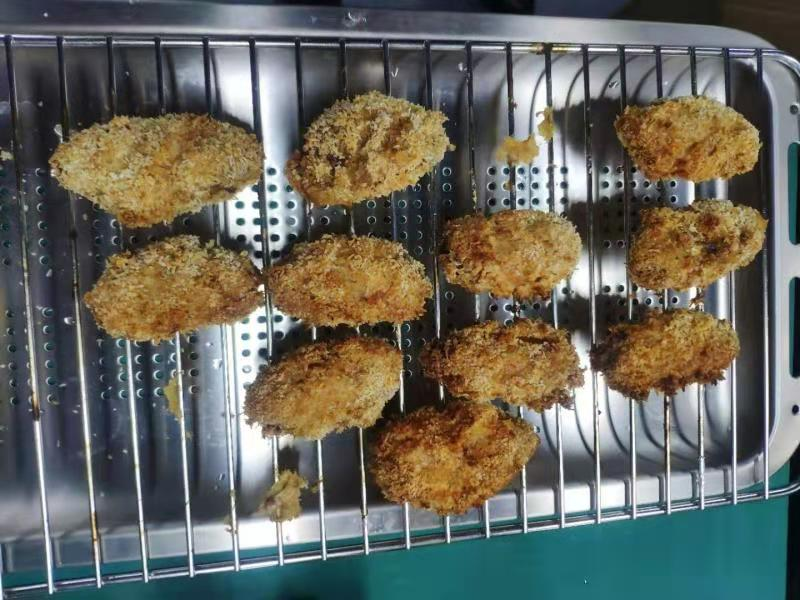 圖1:用其他品牌蒸烤一體集成灶做的裹面包糠雞翅;裹面包糠雞翅是烤出來太硬了,雞翅口感特別柴,短時(shí)間烤不熟,烤的時(shí)間一長就焦了。