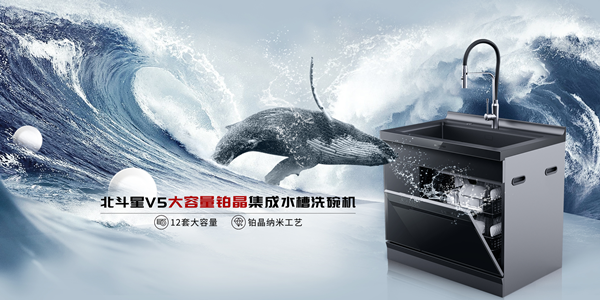 今年,北斗星集成灶深入洞察消費者的需求和期待,帶來了更適合中國廚房的高端新品——北斗星V5大容量鉑晶集成水槽洗碗機,12套大容量、一級水耗,打造你家的集成凈洗中心!