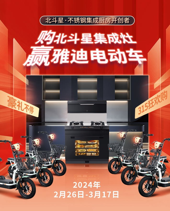 購北斗星集成灶,贏雅迪電動車!