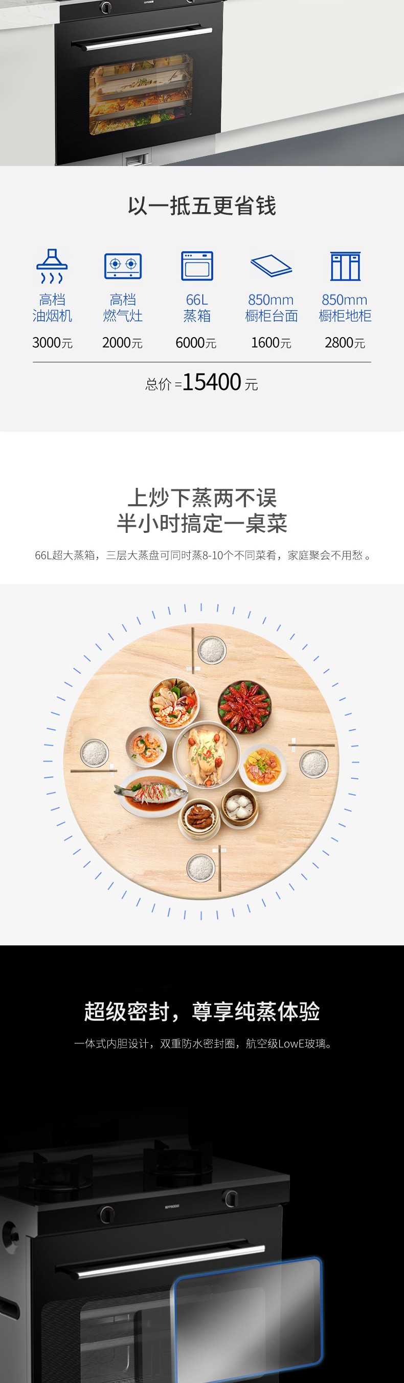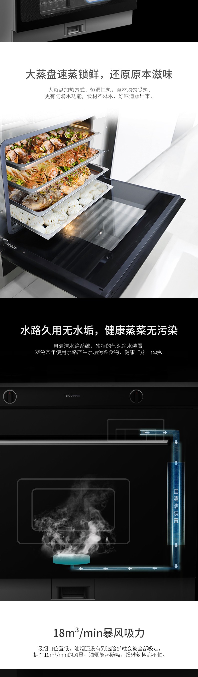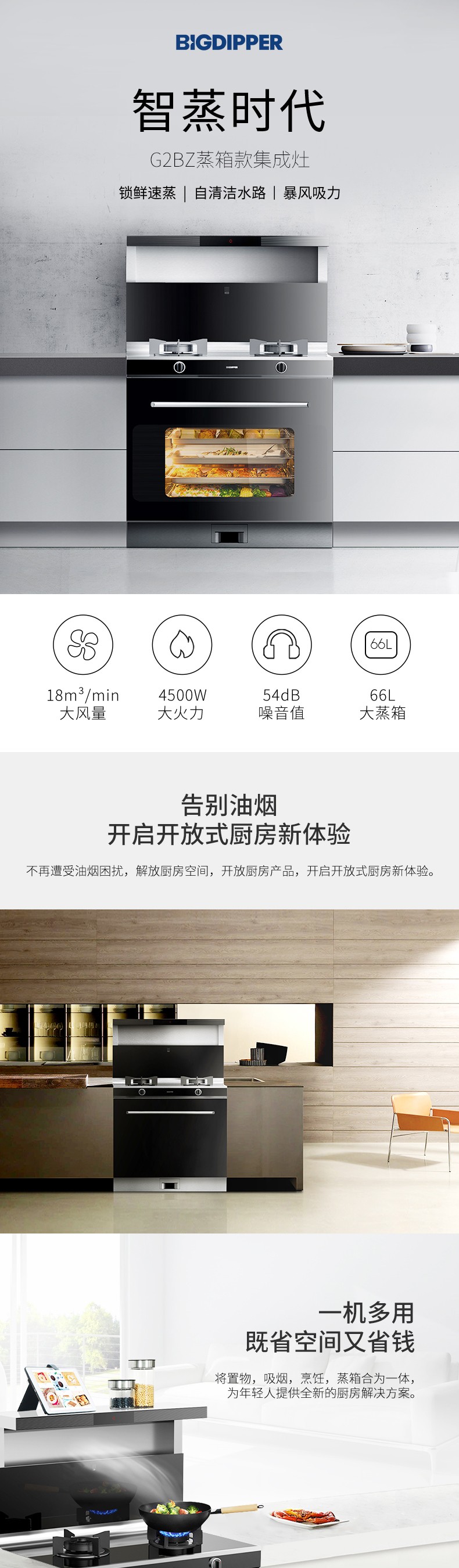 4.5Kw大火力,66L四層大容量蒸箱,